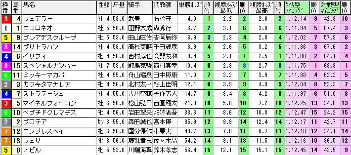 なのでこのレースでも1番人気になった4番フェデラーは疑ってかかった方がいいです。