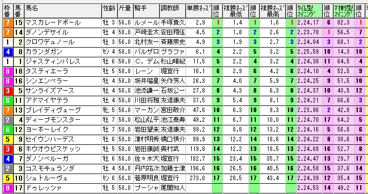 2着に1番人気の15番マスカレードボール
