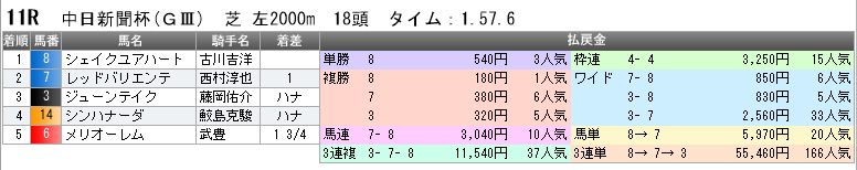 3着も複勝同一オッズの3番ジューンテイクで完全的中!