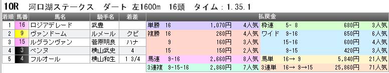 さらに3着も2番人気15番ルグランヴァンで