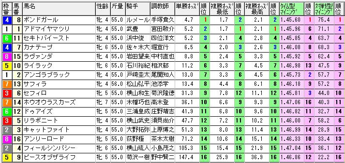 - 単勝4.7倍・複勝1.7倍の1番人気8番ボンドガールは信頼度が低い