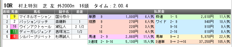 1着は狙った最終6番人気の9番マイネルオーシャン