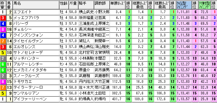これはいつも言っているデータマイニング指数の高い穴馬は一発の可能性を秘めています。