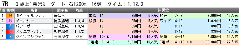 朝イチの段階では9番人気だった14番タイセイルヴァンは、