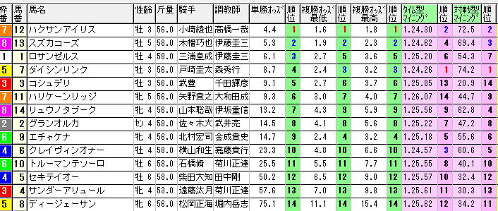 特に1番人気12番ハクサンアイリスは単勝オッズ4.4倍、複勝オッズ1.6倍でいかにも危険なオッズ形態です。
