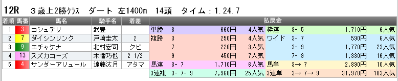 2着に狙った最終3番人気の7番ダイシンリンクで的中。